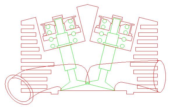 This is a flat-lander (2-D) study of a three-valve head. The cylinder