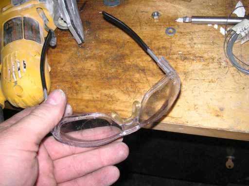 ![]() Time to turn the four pieces of conduit weighing down the tarp into six pieces. Don't be a dork that your friends call "Patches" or "One eye". These safety glasses have reading lenses built in like bifocals. I got them on the web. I love them. ![]() I like DeWalt tools despite their being owned by the craptastic Black and Decker. After I cut the two 2-foot sections in half I took them to the wire wheel and de-burred them. You really need safety glasses with a wire wheel.. |