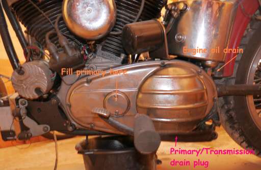 ![]() Ahhh sumping. When the bike sits for a long period, and you start it, oil blows out the breather tube. 1976 and earlier bikes will often have oil leak past the oil pump so all the oil in the tank ends up in the bottom of the engine. There is a spring-loaded steel ball that is supposed to stop this. There are also seals on the shaft and I suspect worn gears can make the problem worse. There is also a transfer valve in the primary (1, 2, 3, 4). If the bike is sumping and this valve is bad, then the excess oil overfills the primary and transmission. That picture reminds me-- don't put silicone sealer anywhere near your primary. The blithering idiot (me) that slathered blue silicone all over the primary surface did not realize that silicone can skate roller bearings, causing them to melt. As to oil, I use 20W-50 synthetic in both engine and tranny. And any oil is better than none, I have used gas station 30 weight to get home once. |